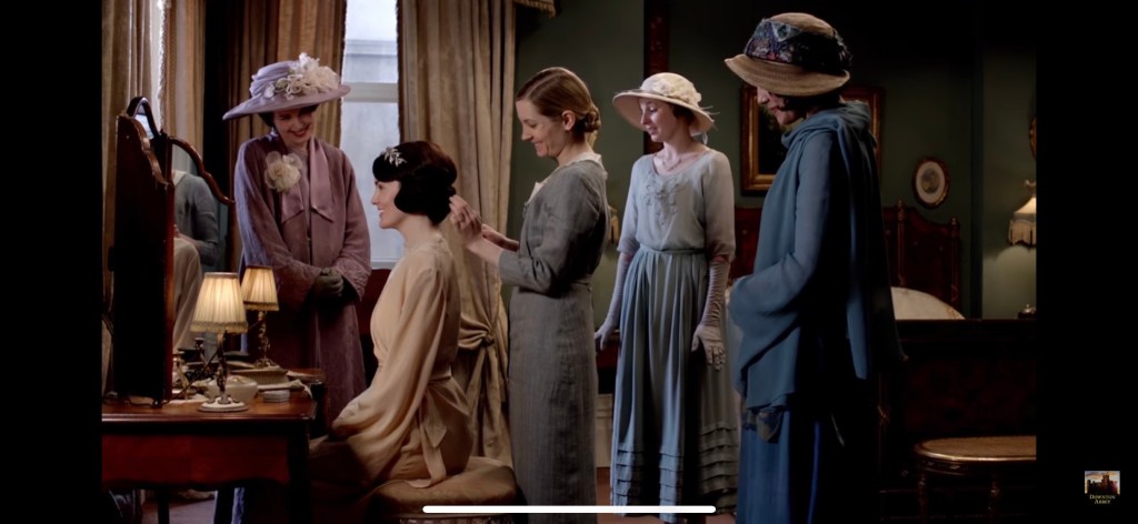 Anyways, when I was watching Downton Abbey, I was really impressed by how long the actresses sit up straight on the edges of their seats for. Here’s one example: